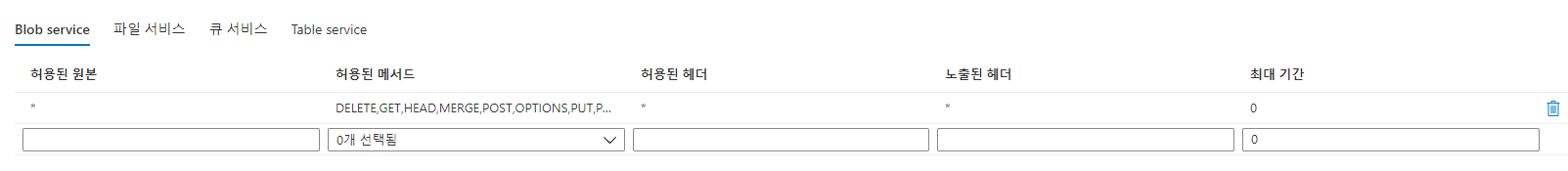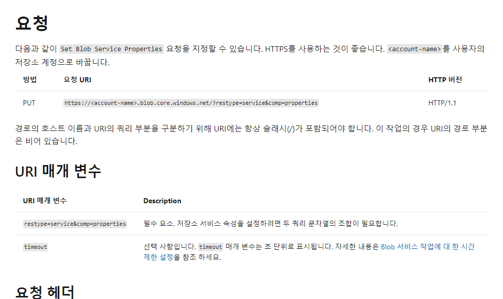 Blob 서비스 속성 설정 (REST API)-Azure Storage