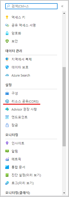 CORS는 특정 도메인에서 실행되는 웹 애플리케이션이 다른 도메인의 자원에 액세스할 수 있도록 하는 HTTP 기능입니다. 각 Azure Storage 서비스에 대해 개별적으로 CORS 규칙을 설정할 수 있습니다. COR