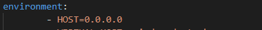 - [environment: HOST=0.0.0.0으로 localhost→0.0.0.0으로 변경된다. package.json으로 안해도 된다니..! 애초에 node가 환경변수를 확인하는 코드가 있는 걸로 추정된다.