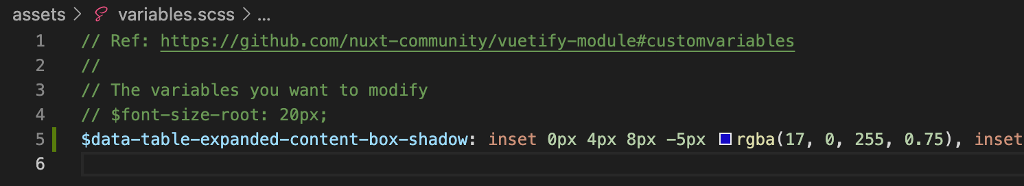 treeShake Option을 true로 변경해주고, (nuxt 기준) nuxt.config.js에 선언된 vuetify options중 customVariables에 작성하라고 한다.