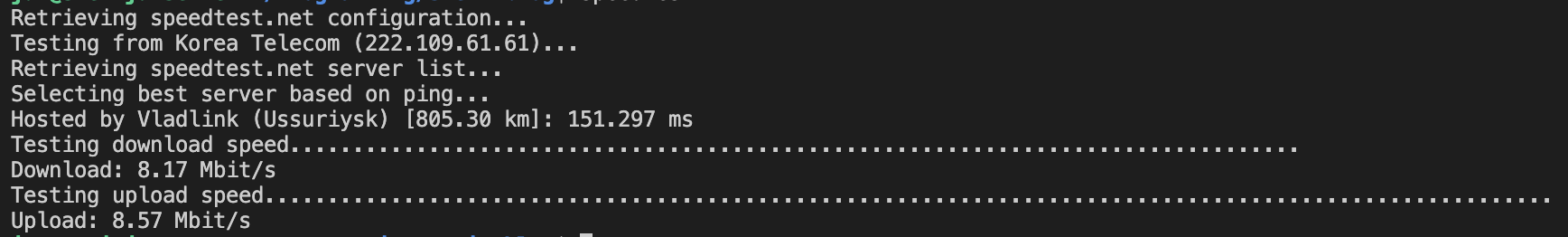 인터넷 속도가 너무 느리다... 대충 초당 1MB 밖에 안된다. 그래서 공유기를 거치지 않고 인터넷을 연결하니 초당 10MB는 나오더라(다행).