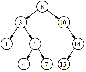 레벨순서(Level-order, BFS): 8 3 10 1 6 14 4 7 13