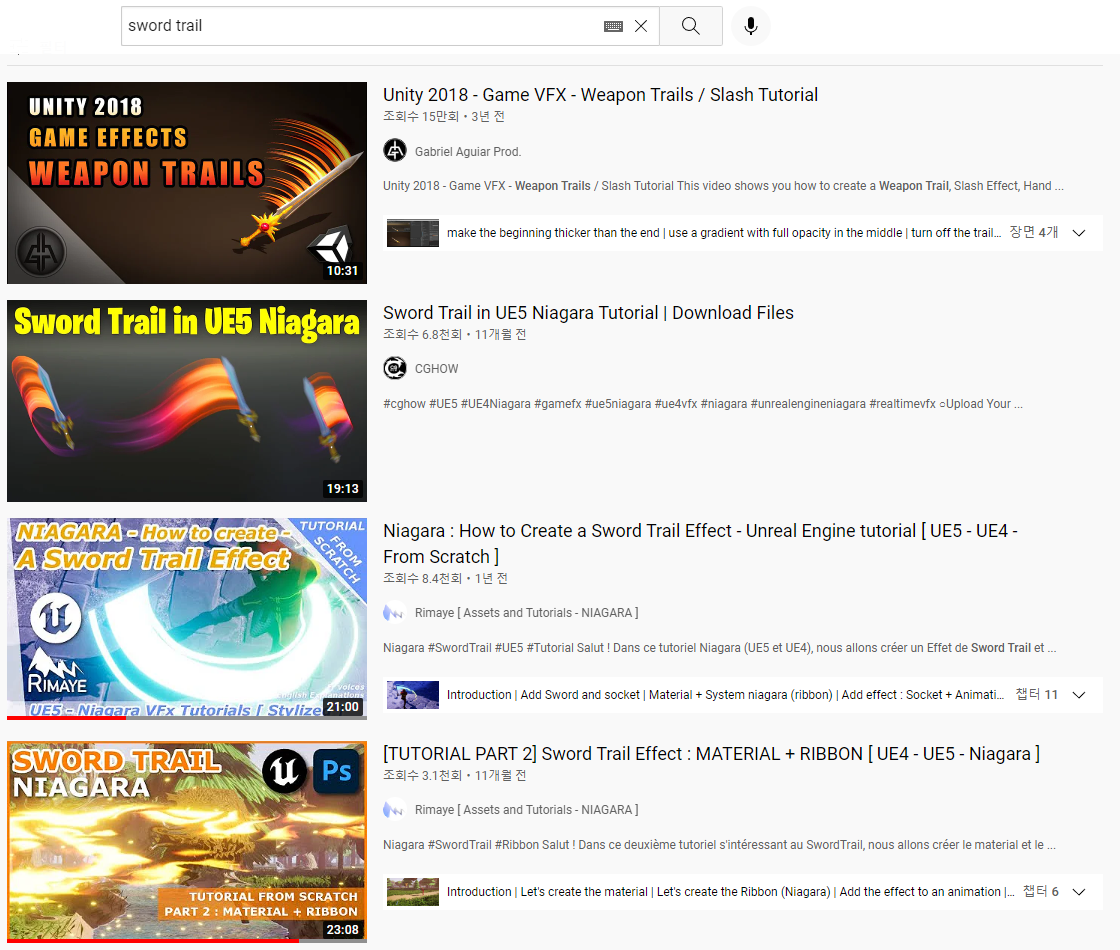 검 궤적에 대한 효과는 수많은 게임들에서 사용하고, 구현한 효과이기 때문에 강좌가 있을 것이라 생각했다. 영어로 해당 효과는 Sword trail이라고 부르더라.