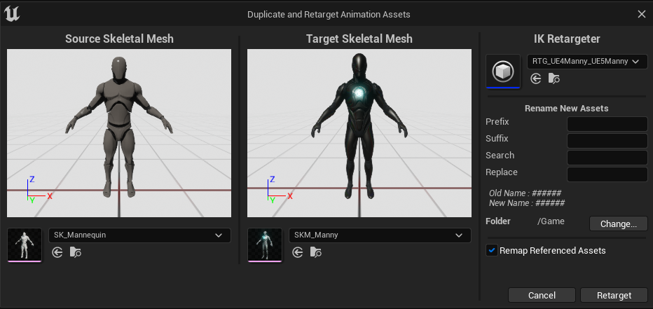 본 게시글에서는 UE4의 Mannequin 애니메이션을 UE5의 Mannequin으로 이식하는 과정을 설명한다.