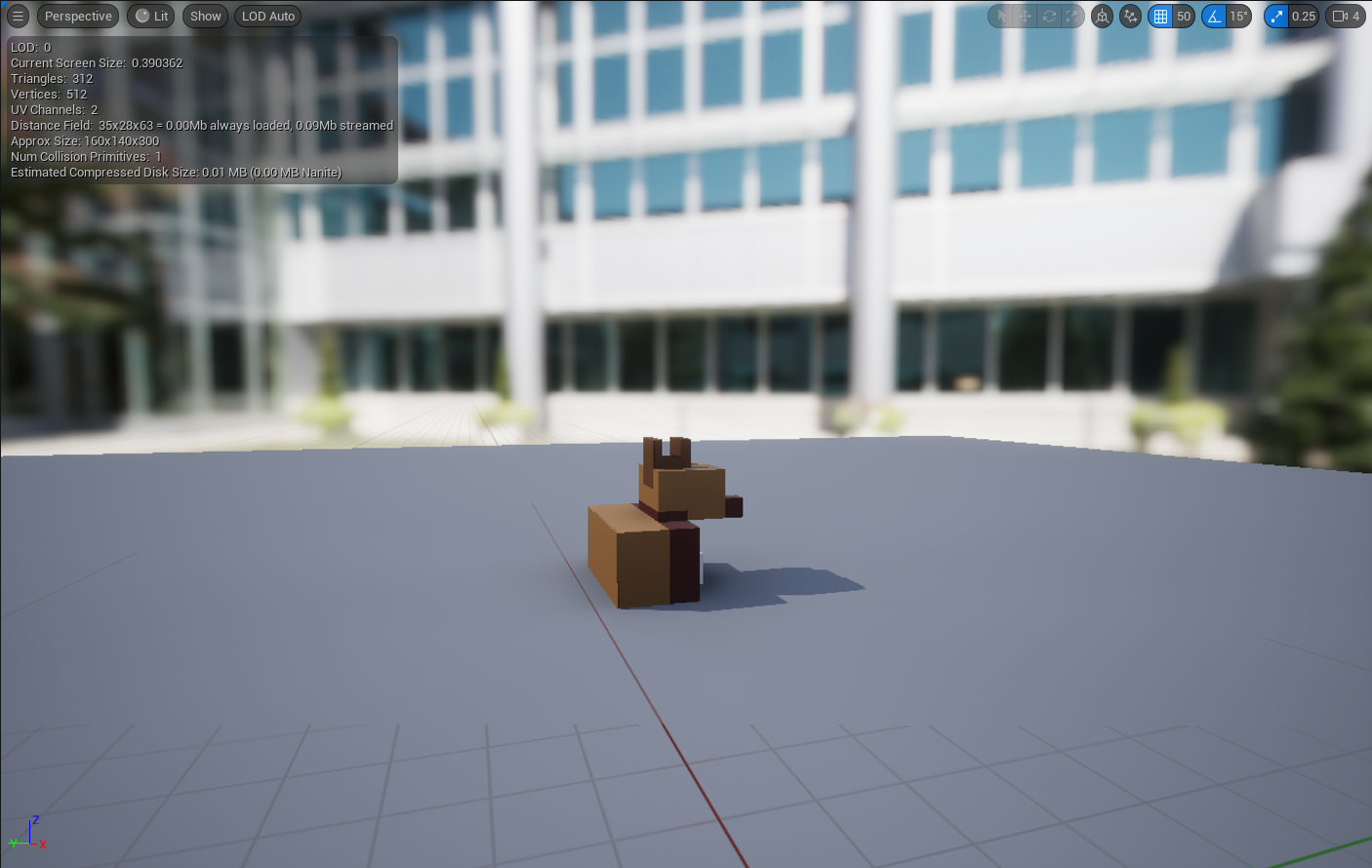 생각보다 모델링은 복셀로 가볍게 되었다! 모바일용 unreal 프로젝트를 생성하니 그래픽 표현이 약간 떨어지는 것을 볼 수 있다. 하지만 플레이하는데에는 방해가 되진 않으므로 문제 없다. 다음 게시글에서는 모델들이 움직일 수 있게 구현해 볼 것이다.